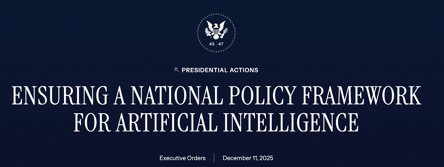 Executive Order 14365 is a particularly big deal because it’s effectively setting the stage for a ‘federal v state’ standoff, with Federal boldly testing the constitutional limits of State-led tech oversight. “Contentious regulatory simplification” is how I would describe this incoming period.